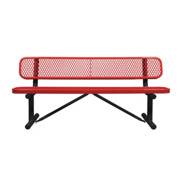 Our standard expanded metal bench with back is a very popular model that can go anywhere and look sharp. The dripless thermoplastic coating looks fantastic even as it protects the steel from rusting.