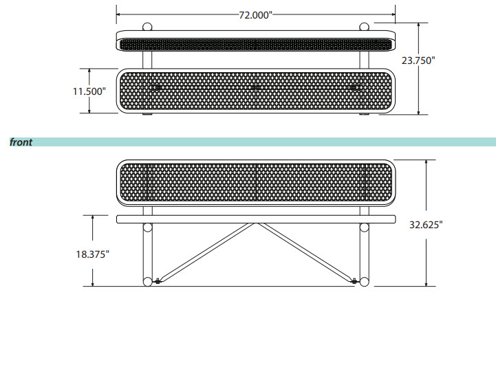 Our standard expanded metal bench with back is a very popular model that can go anywhere and look sharp. The dripless thermoplastic coating looks fantastic even as it protects the steel from rusting.
