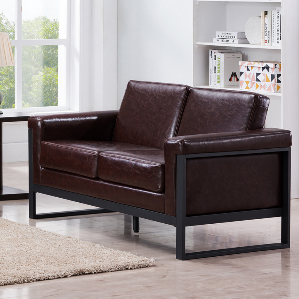 The Attica Faux Leather Living Set brings strong traditional style to any space with its comfortable vinyl upholstery and sturdy metal legs. The polished brown finish of the faux leather seats and backs give off a sense of pure elegance, while the square metal frames ensure a heavy-duty foundation.