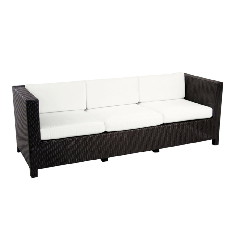 The contemporary block styling of the Birch Sofa makes it a focal point in outdoor areas, where it contrasts with organic shapes like trees, waves, and flowers. Built to last for years, this patio sofa features a weatherproof, synthetic wicker weave over a sturdy aluminum frame. Canvas outdoor cushions add a classic touch.