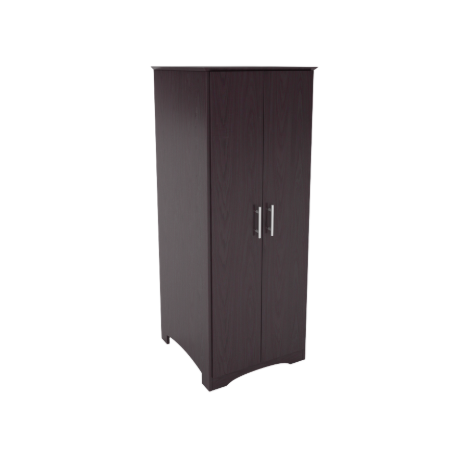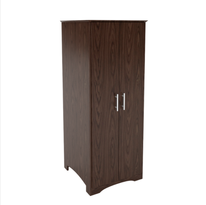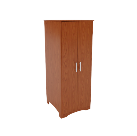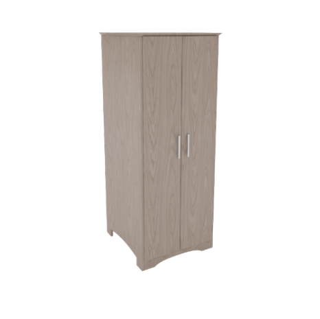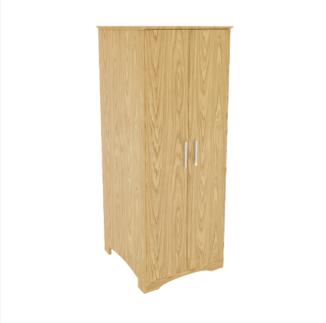 Double door wardrobe with clothes rod. Various shelf and drawer options available. Solid wood round knobs, veneer core plywood construction.