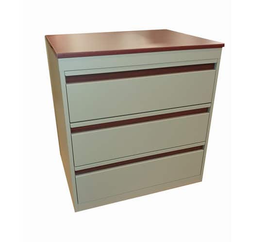 - Metal 3 Drawer Chest with Laminate Top Creates a Home-Like Look with the Durability of Metal Furniture.