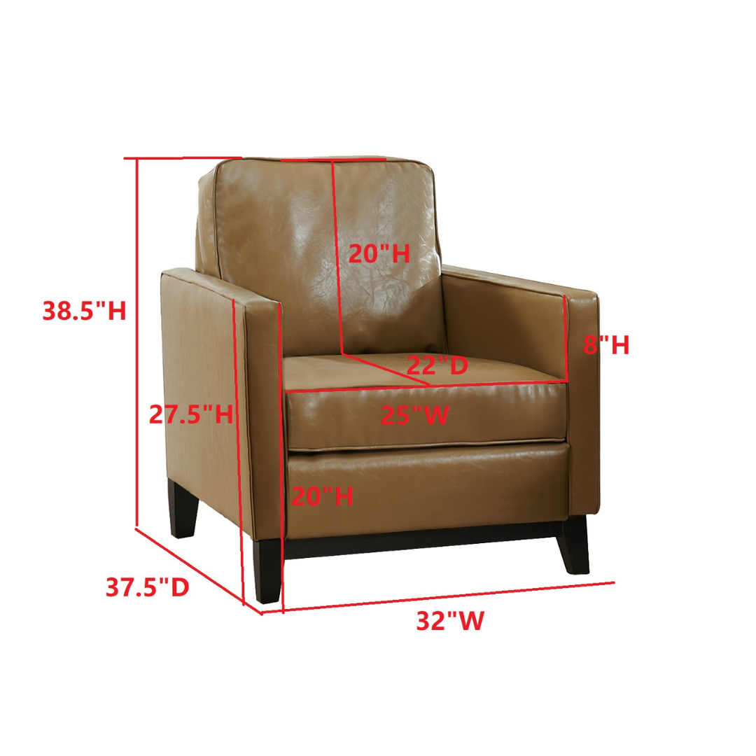 Our Soho Faux Leather Living Room Set is a harmonious blend of strength and coziness for any space. Its smooth vinyl upholstery exudes luxury, perfectly complemented by sturdy wood frames that ensures enduring support. The meticulously crafted design showcases a refined trim lining along the edges of the pieces, accentuating their classic appeal. With removable seat and back cushions, this living room set offers customizable relaxation, inviting you to sink into its plush comfort. Underneath each piece are four sleek black wood legs with an additional crossbeam for support.