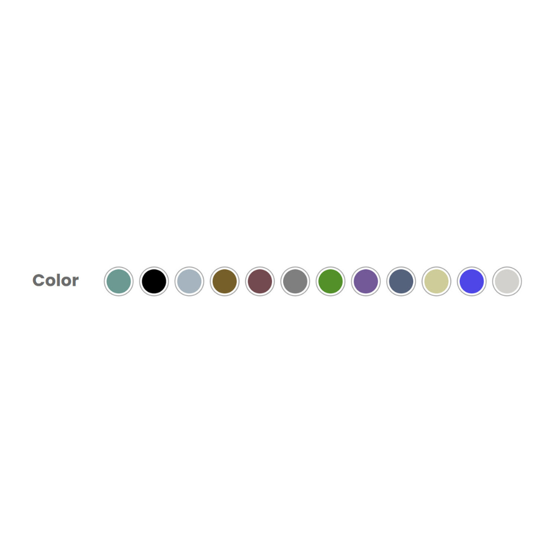 COLOR Aqua, Black, Blue Gray, Brown, Burgundy, Gray, Green, Indigo, Midnight Blue, Sand, Slate Blue and Stone Gray