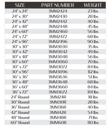 • Table Tops over 48″ subject to an oversized pallet fee per pallet